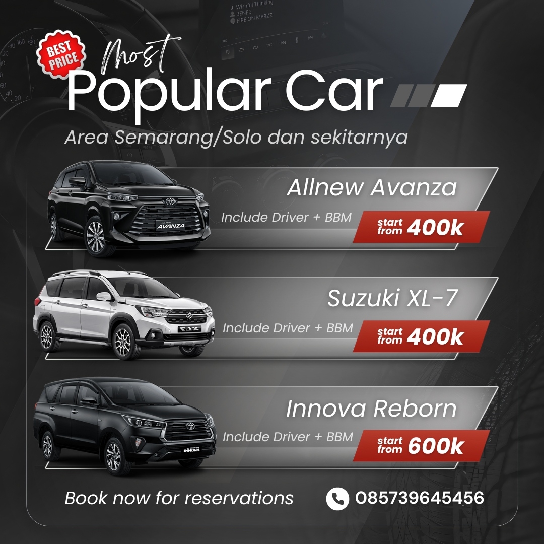 Butuh transportasi nyaman dari Semarang ke Salatiga? Sewa mobil tarif terjangkau, aman, dan siap antar jemput kapan saja. Armada lengkap... selengkapnya..