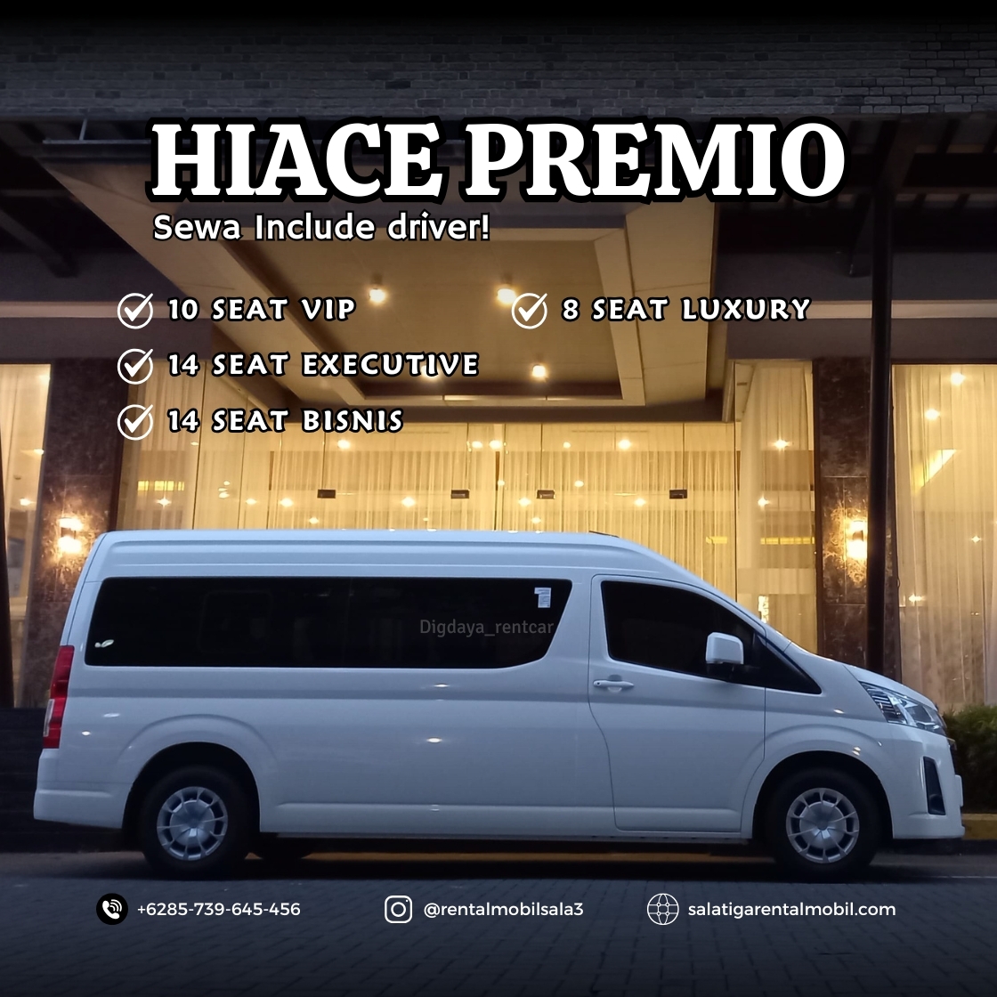 Sewa Mobil Salatiga Digdaya Artha Trans. ( Melayani rental mobil area Salatiga, Ambarawa, Semarang, Solo dan sekitarnya ) Toyota Hiace... selengkapnya..