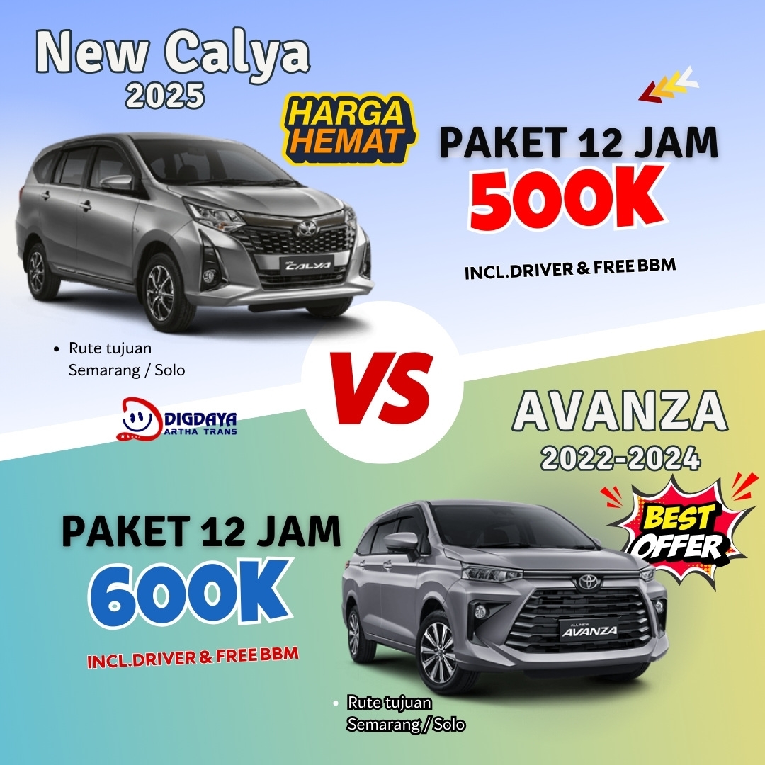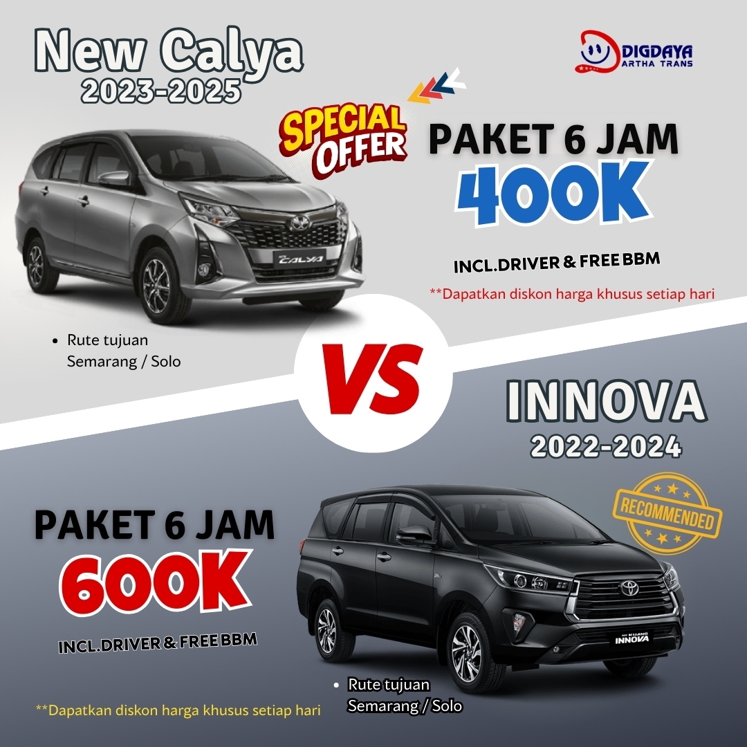 lagi cari mobil sewa dari semarang ke Salatiga yang nyaman tapi tetap hemat ? Digdaya Artha Trans hadir dengan beragam pilihan armada... selengkapnya..