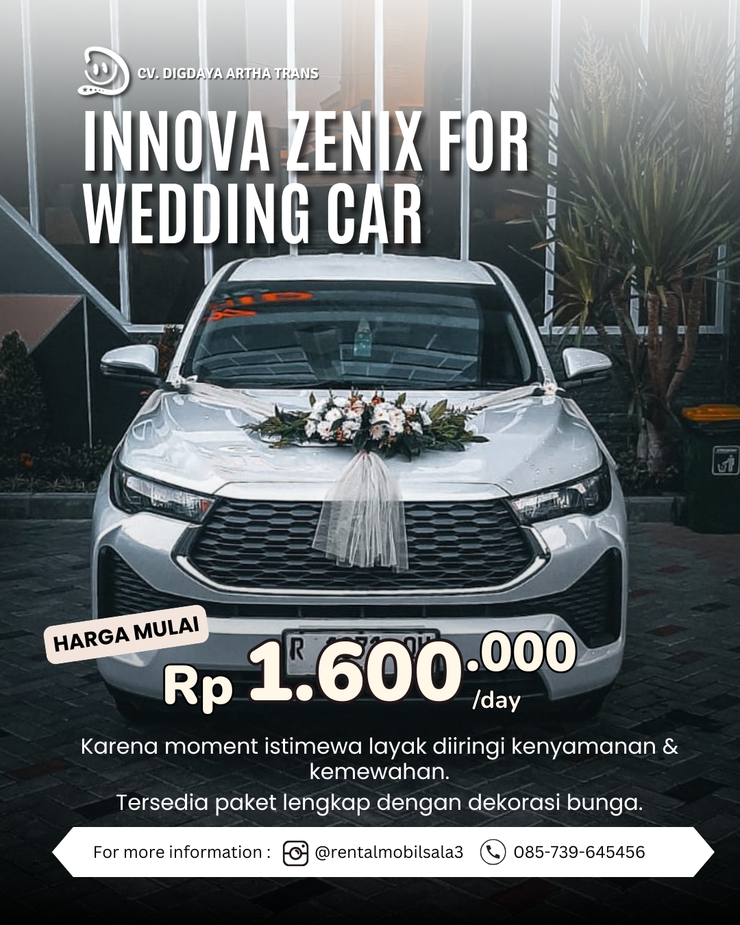 Rayakan hari spesial dengan Innova Zenix Hybrid dari Digdaya Artha Trans. Driver profesional, mobil nyaman, dan harga kompetitif siap... selengkapnya..